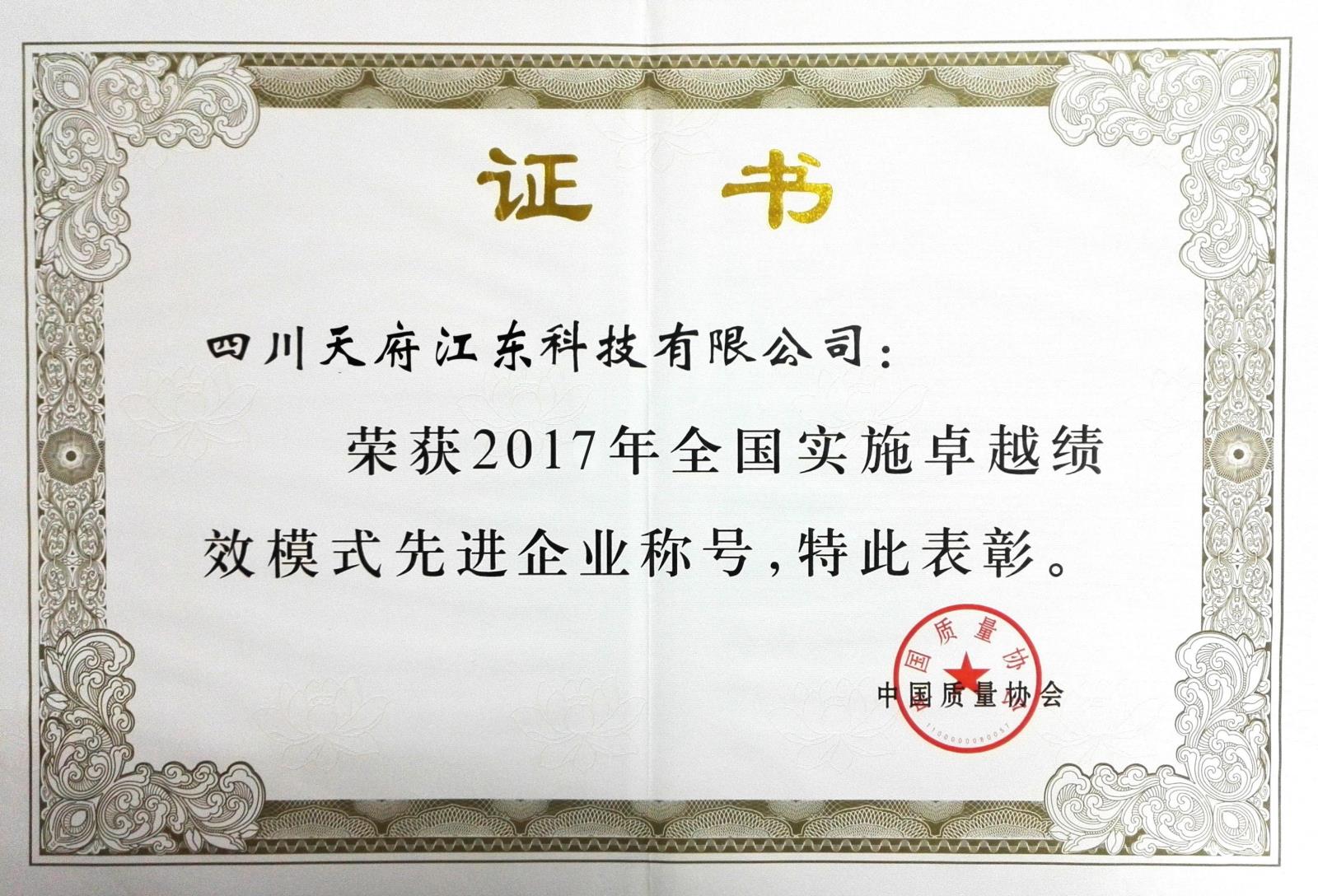被評(píng)為實(shí)施全國(guó)卓越績(jī)效先進(jìn)企業(yè)